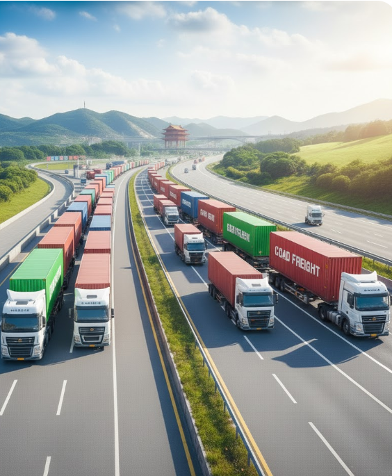 Road freight offers a middle-ground solution,faster than sea freight,more economical than air freight.